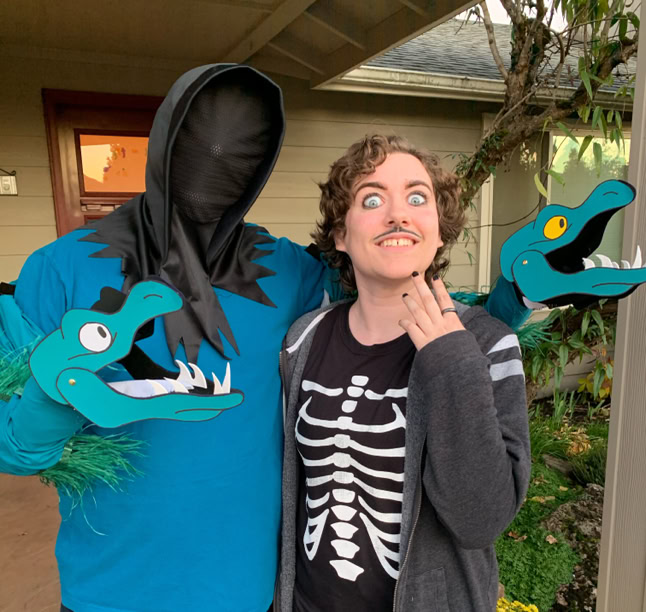 Costumes are puppets are both operated from the inside.